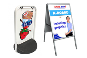 A cost effective way to grab the attention of passing trade, Signs 2 Go pavement signs are available in two popular models.